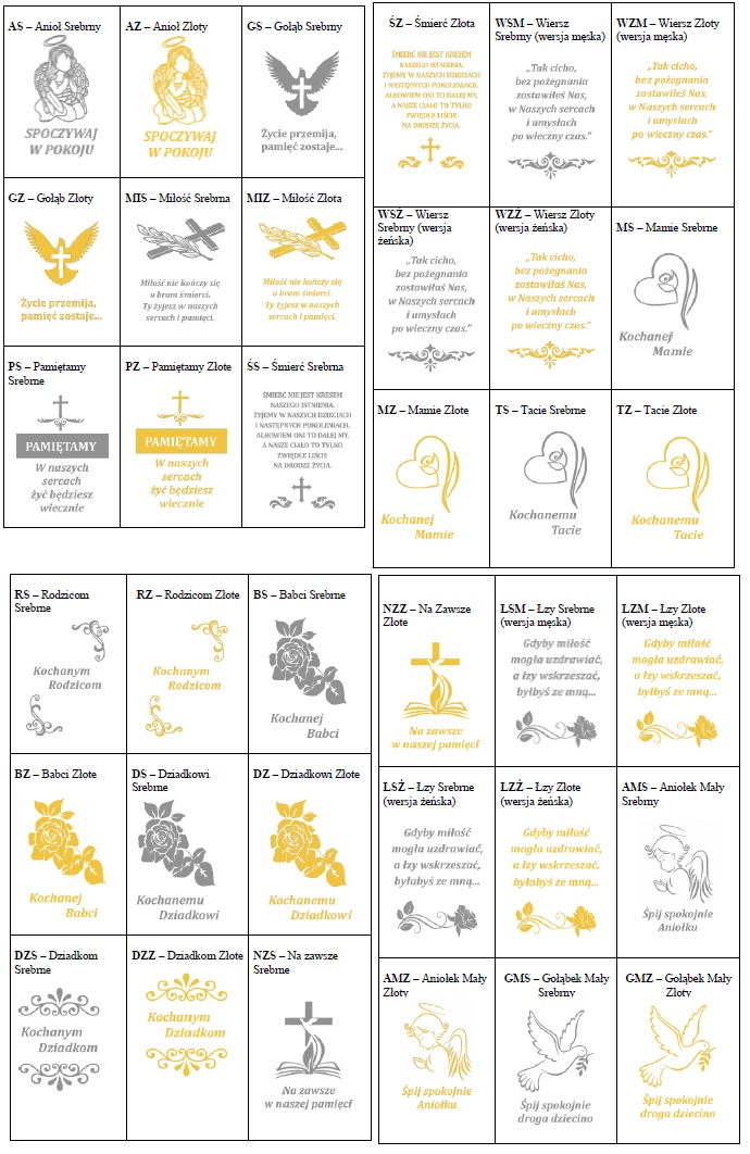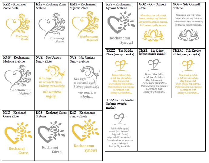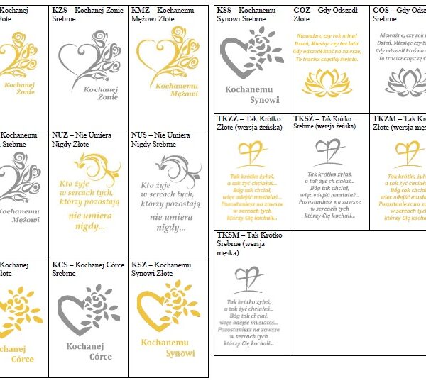 Po zakupie prosimy o informację, który wzór tekstu na księdze białej ze srebrnym Państwa interesuje.